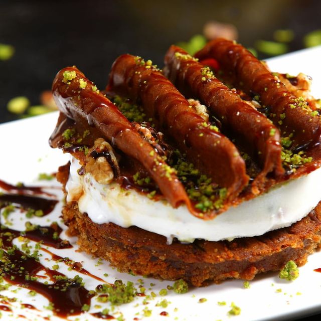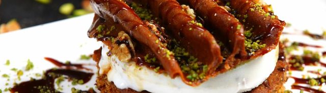 Featured speciality desserts including our unique Dubai-style sundae and distinctive pistachio milkshake.